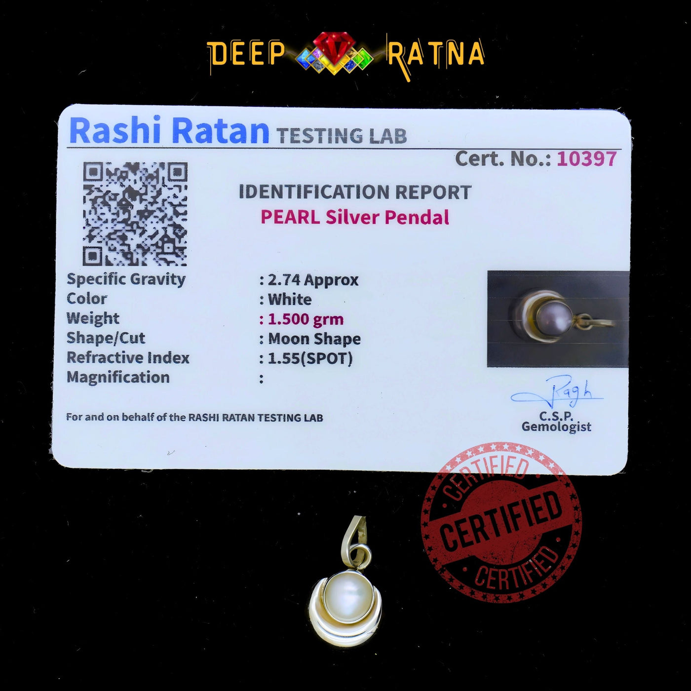 Half Moon Pearl Silver Pendent (1.51 Gram)